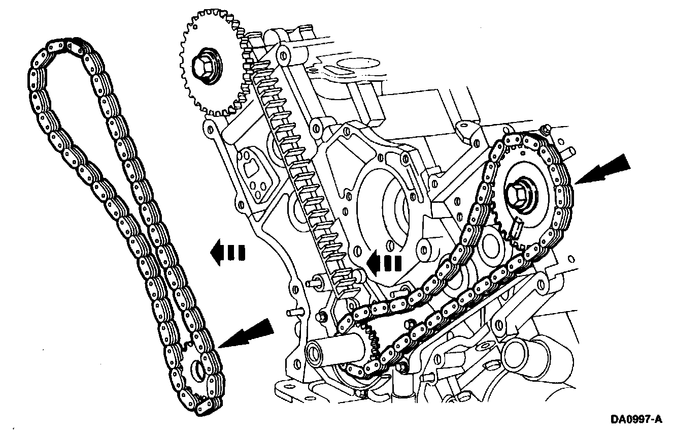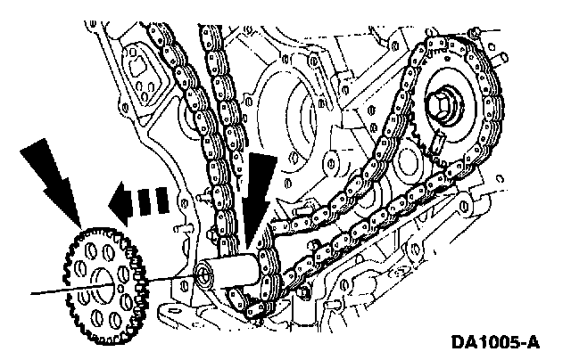 ^ Remove the RH timing chain and outer crankshaft sprocket from the crankshaft.