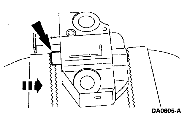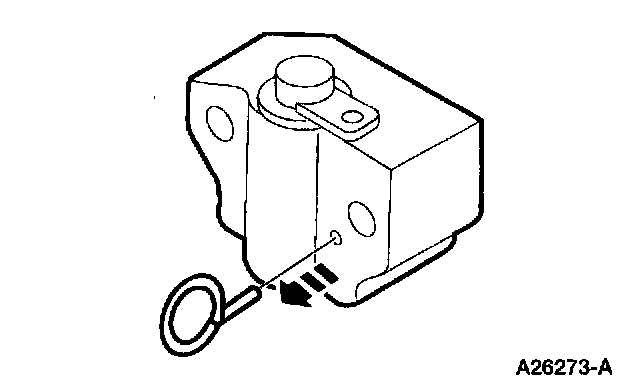 4. Install a paper clip into the hole in the tensioner housing to hold the ratchet assembly and plunger in during installation.