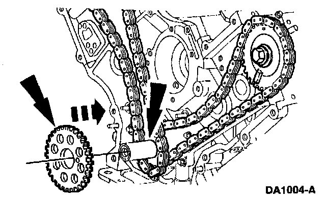 Install the timing chain on the camshaft sprocket with the two chain links and timing marks aligned. Specifications
