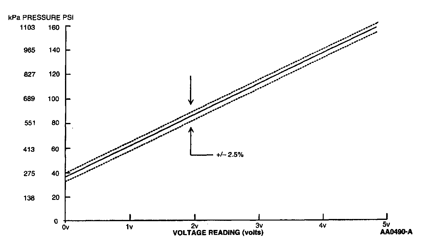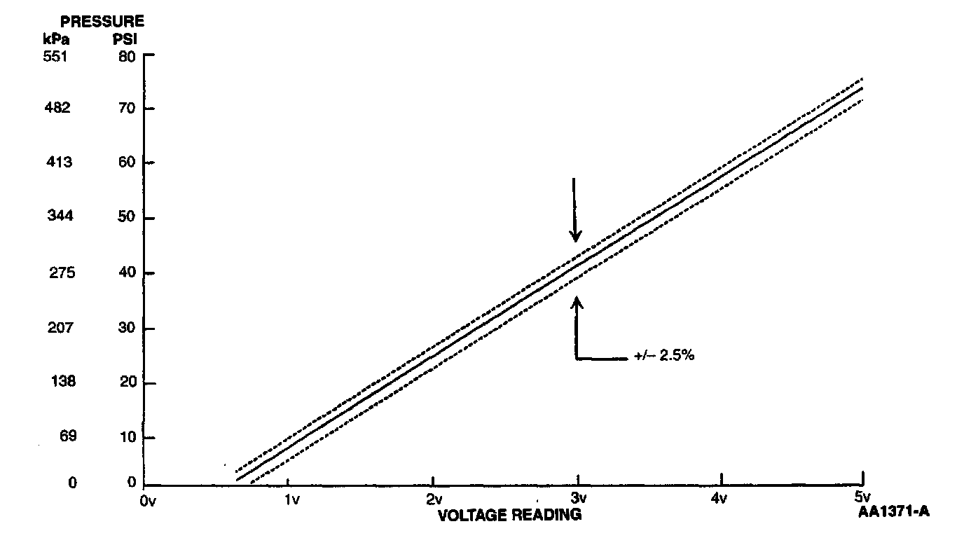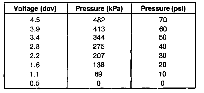 Voltage values were calculated for VREF 5.0 volts. These values may vary 15 percent due to sensor and VREF variations.