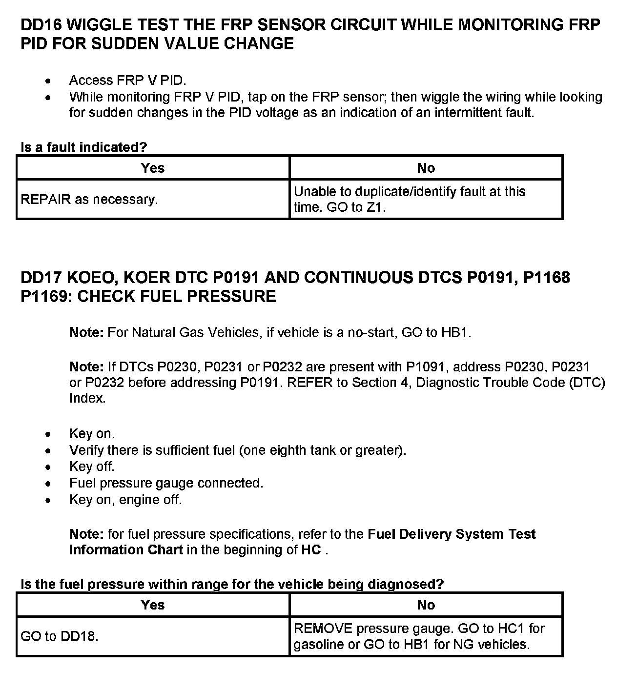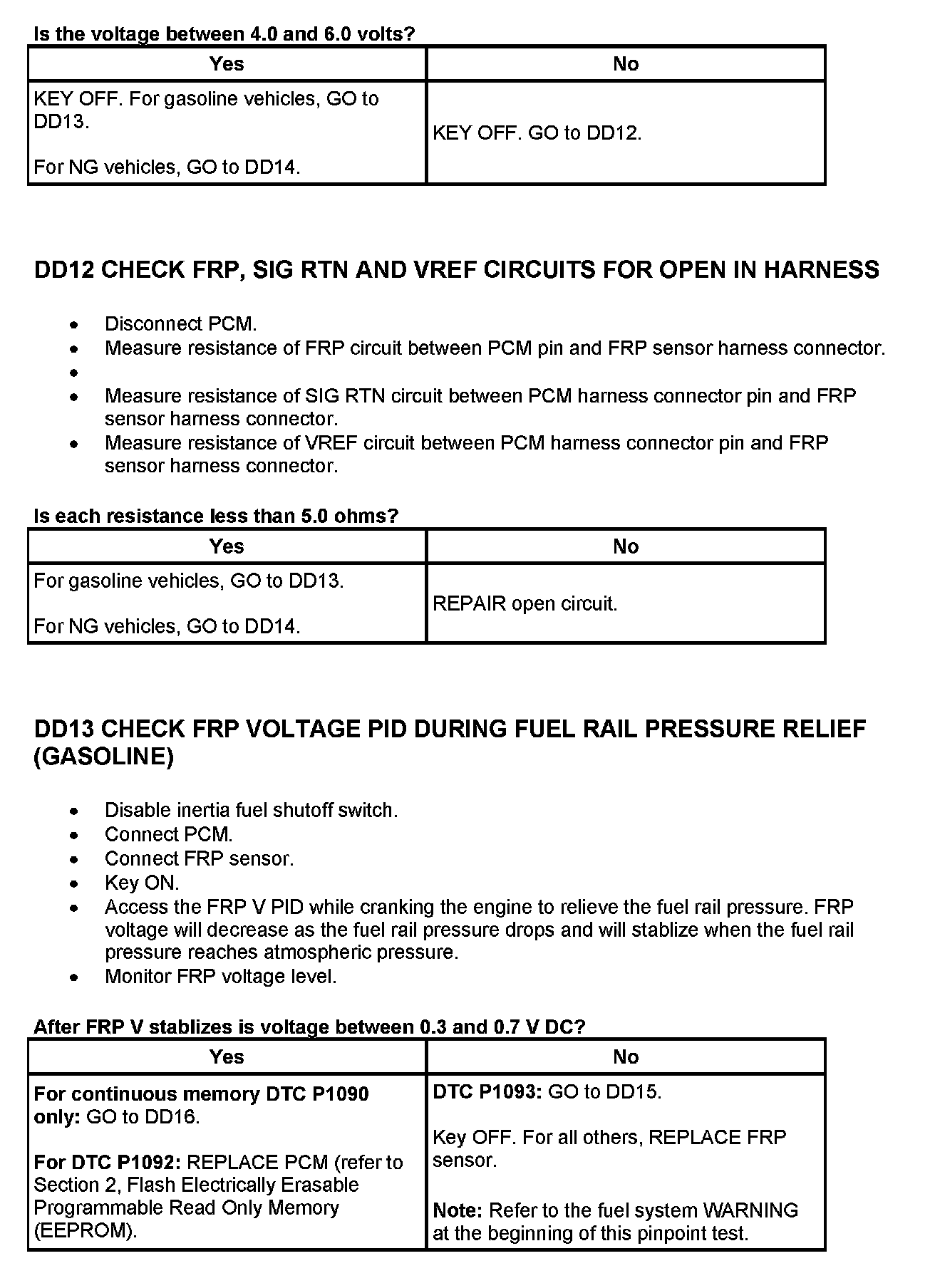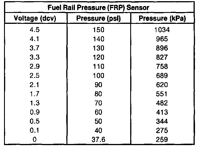Gasoline Vehicles (FRP Voltage And Pressure Chart):