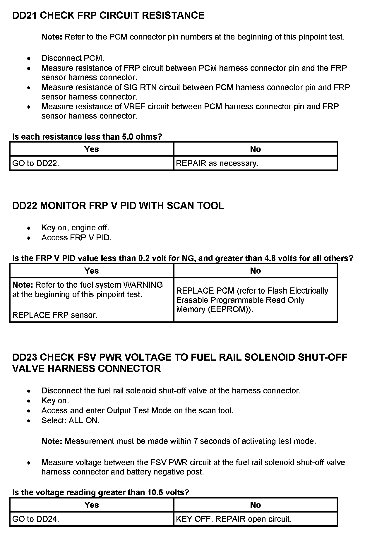 Tests DD: Fuel Rail Pressure (FRP) Sensor