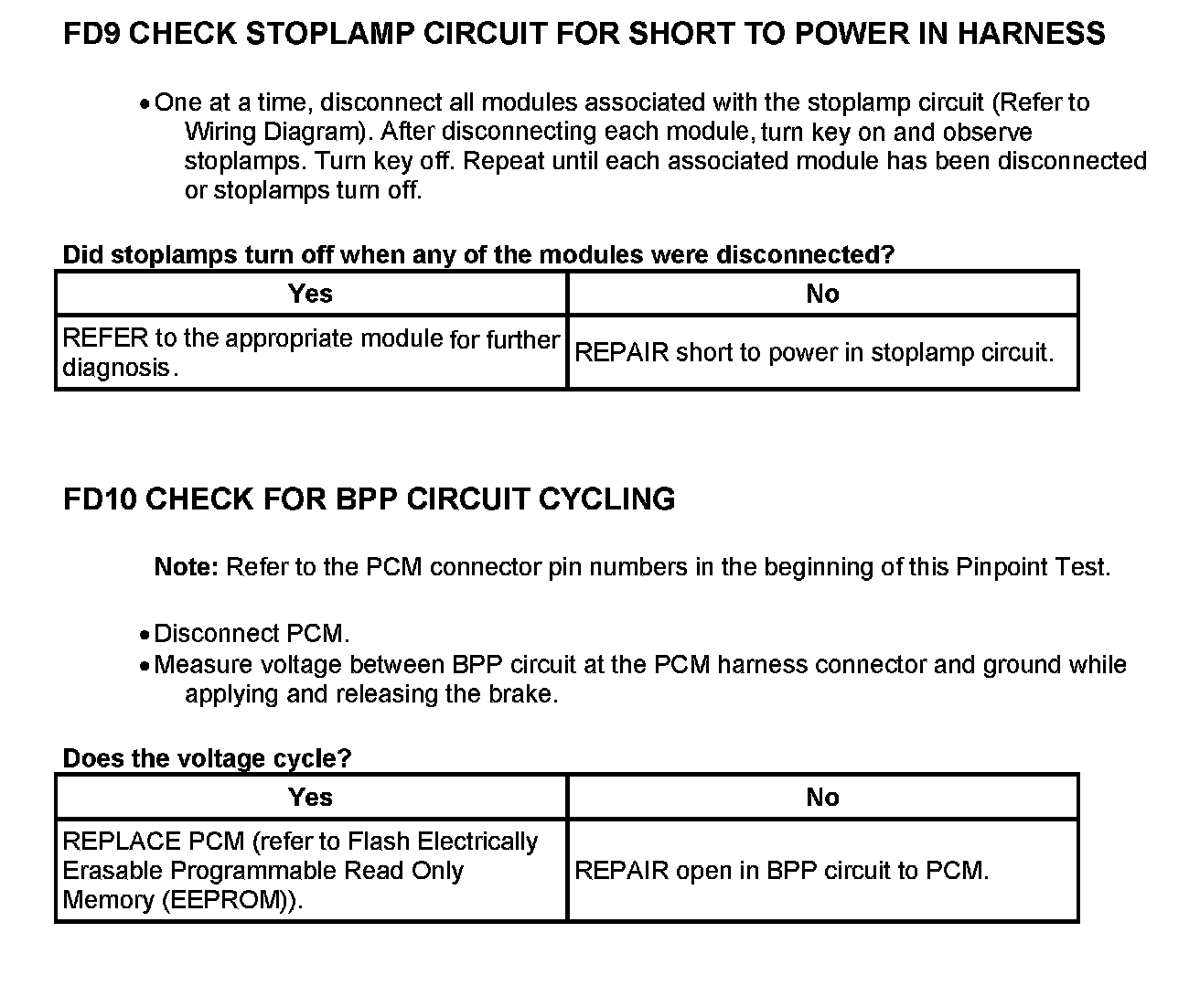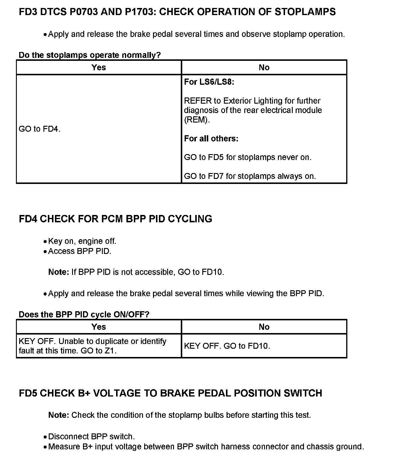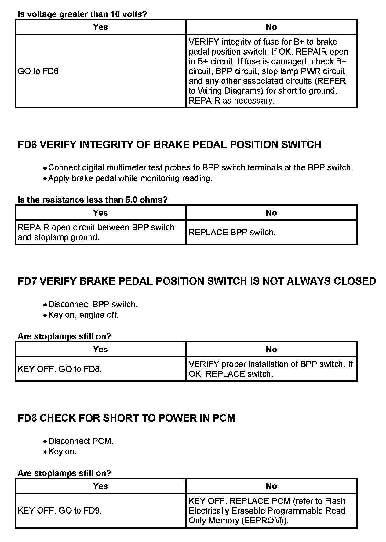 Tests FD: Brake Pedal Position (BPP) Switch