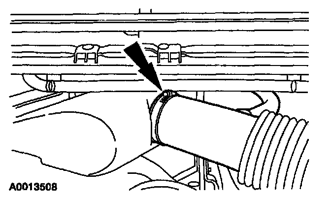 2. Loosen the clamp and position the air cleaner outlet tube aside.