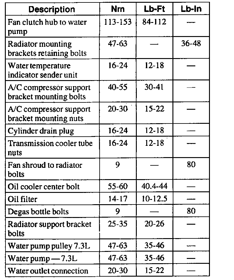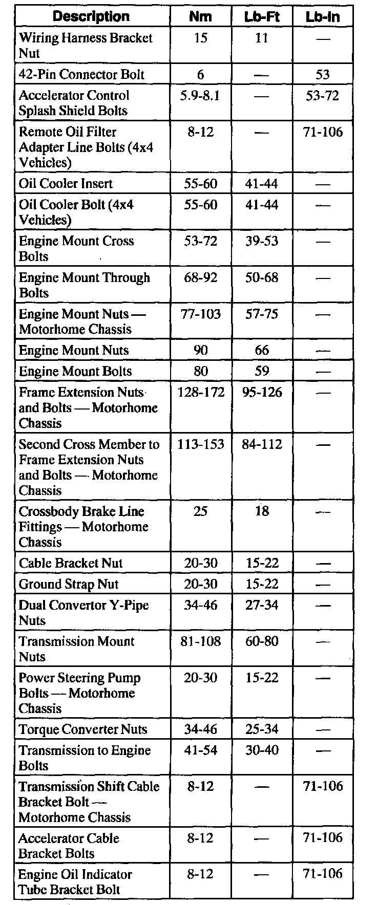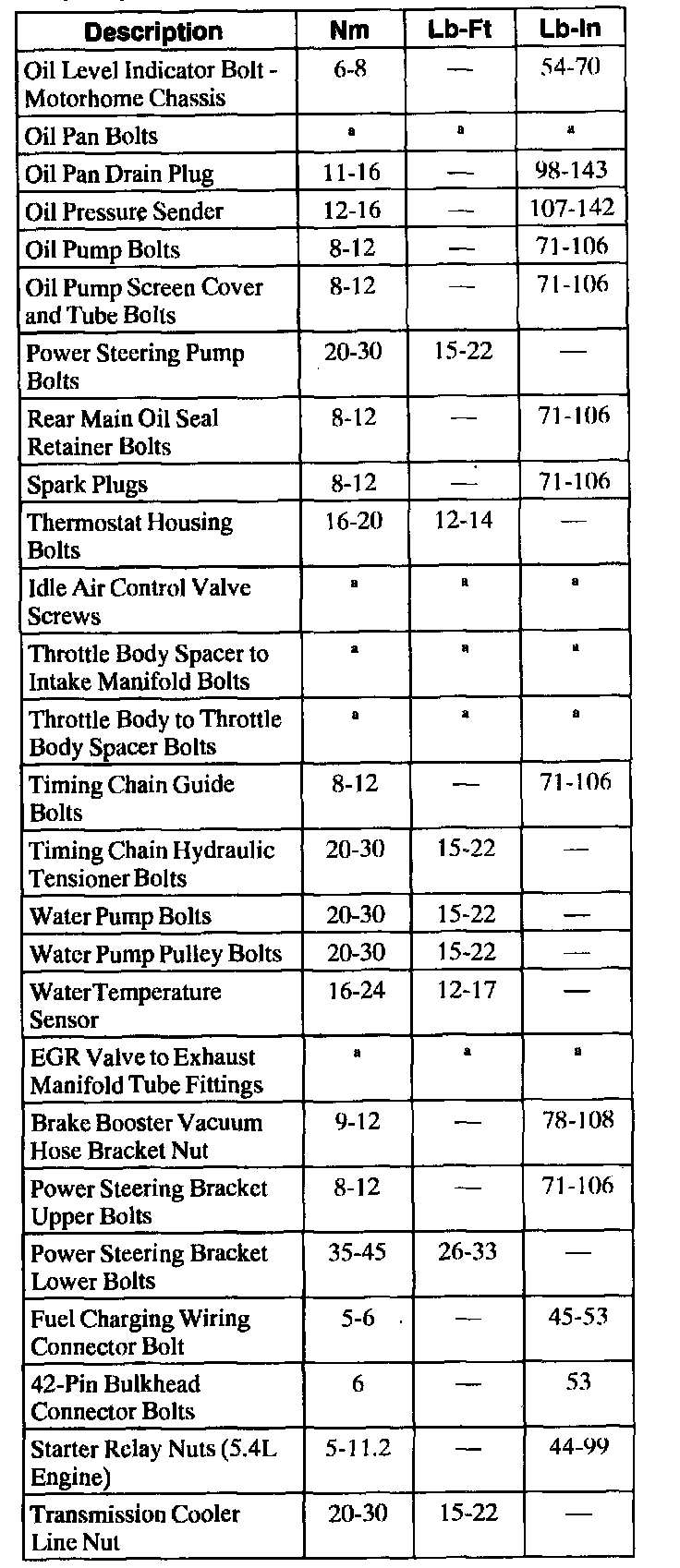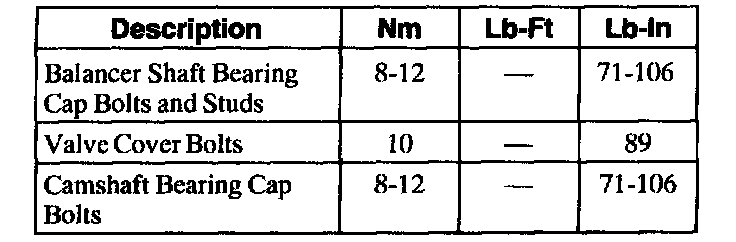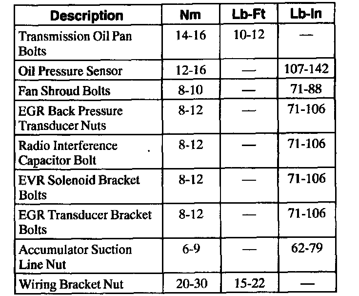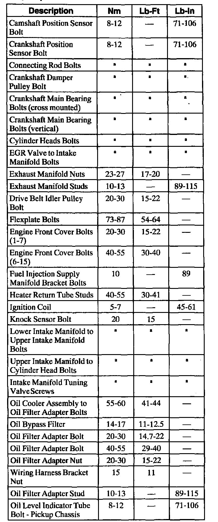 General Torque Specifications