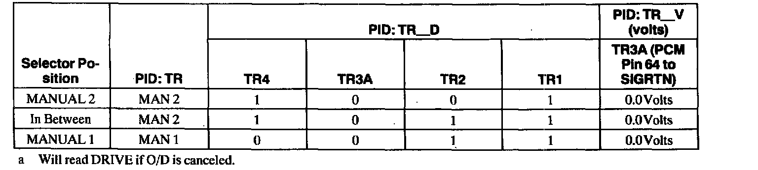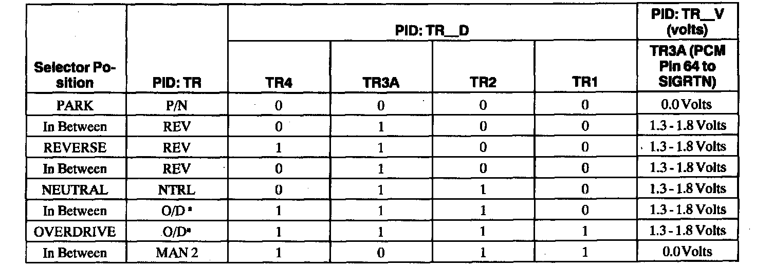 -1.8-5.0 volts = Invalid reading (open in wires or bad resistor in digital TR sensor).