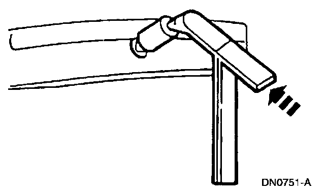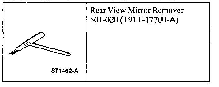1. Insert the Rear View Mirror Remover into the mount on the inside rear view mirror.