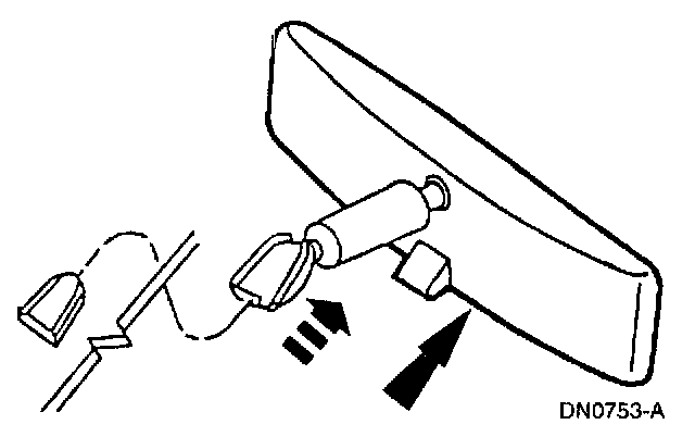 6. Slide the inside rear view mirror downward onto the inside rear view mirror bracket.