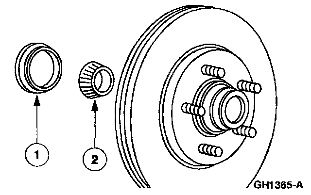 1. Thoroughly clean and inspect the front wheel bearings and the disc brake hub and rotor.