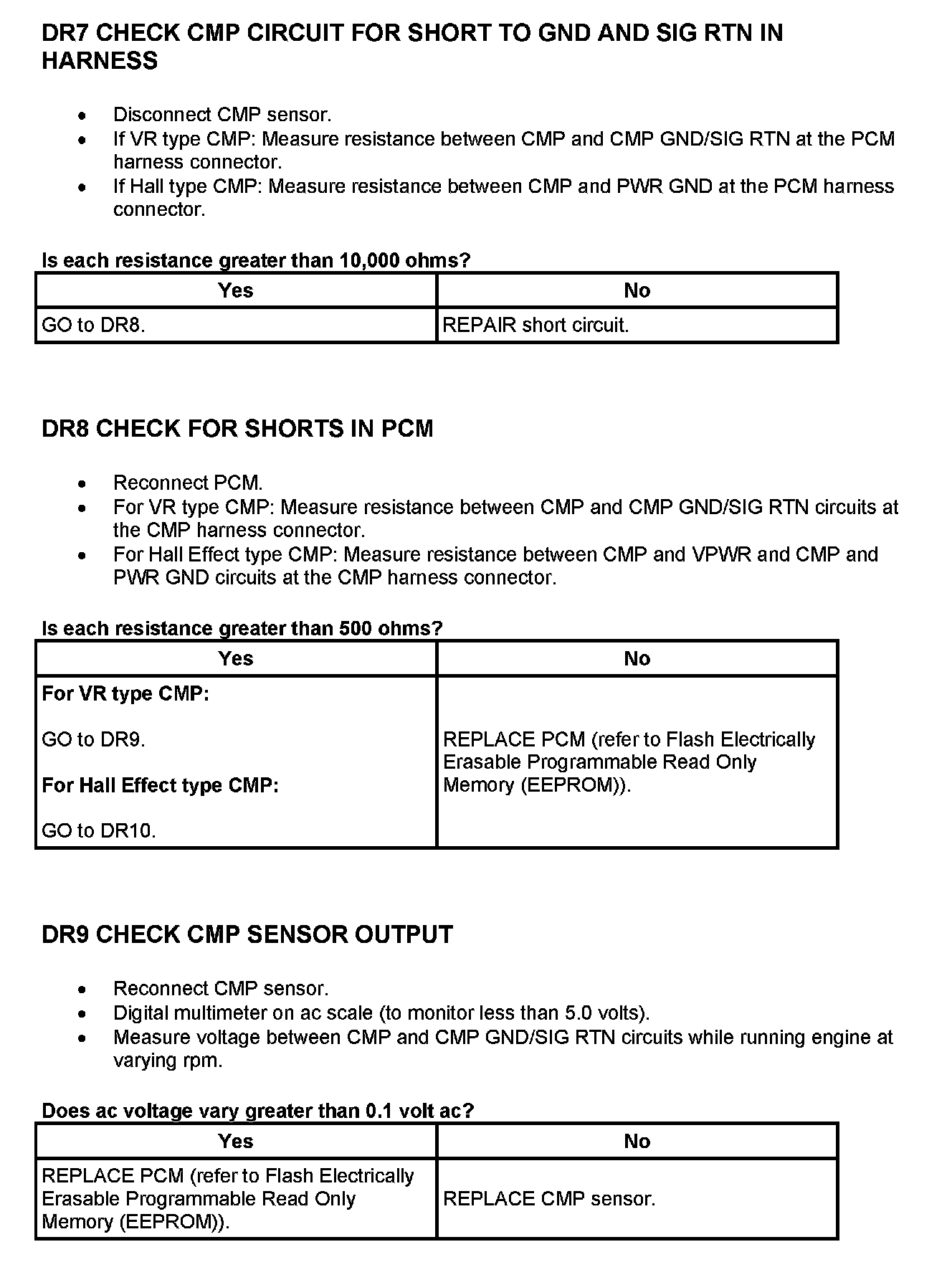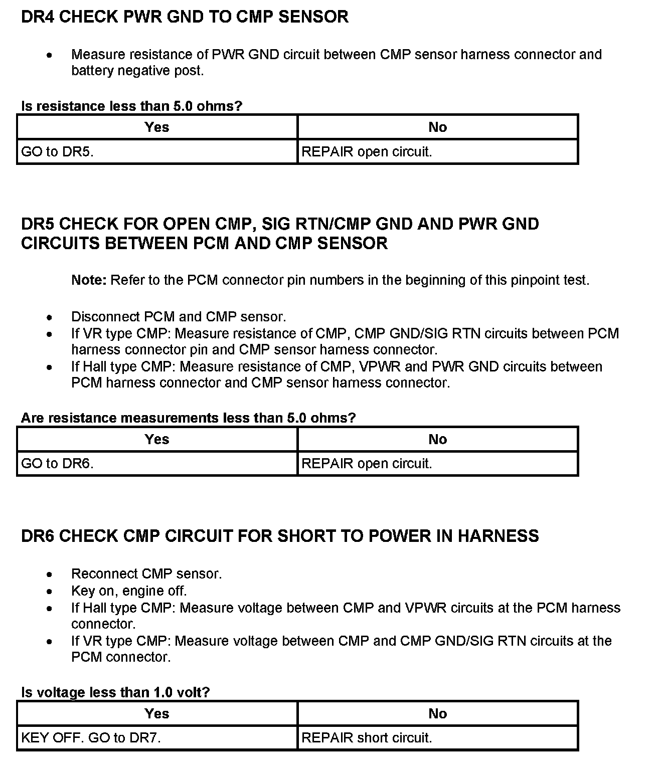 Tests DR: Camshaft Position (CMP) Sensor
