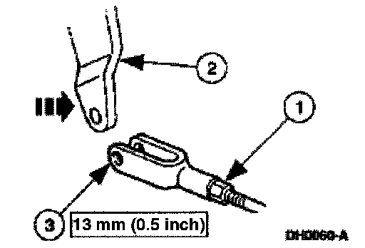 3. Tighten or loosen the adjusting clevis until the adjusting clevis hole lines up with the parking brake lever hole, and then loosen the adjusting clevis 13 mm (0.5 inch).