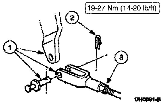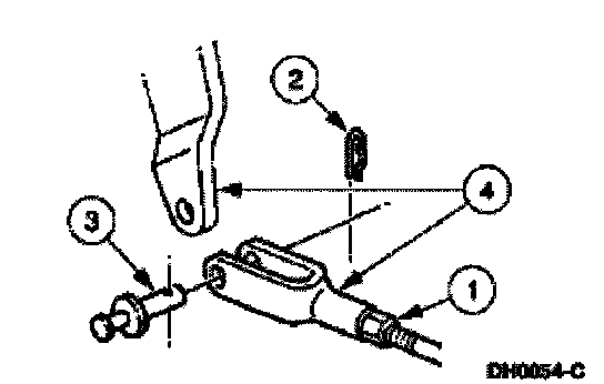 1. Install the clevis pin through the adjusting clevis and the parking brake lever.