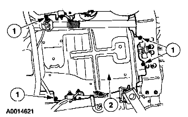 7. CAUTION: Be sure not to raise the back of the transmission too high, if it makes contact with the underbody damage to the TSS and OSS sensors will occur.