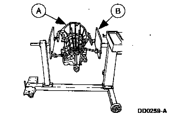 Mount the (A) transmission to the (B) Car/Truck Engine Repair Stand.