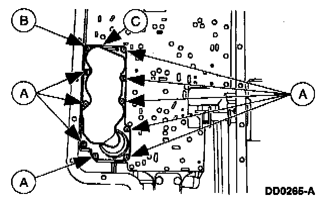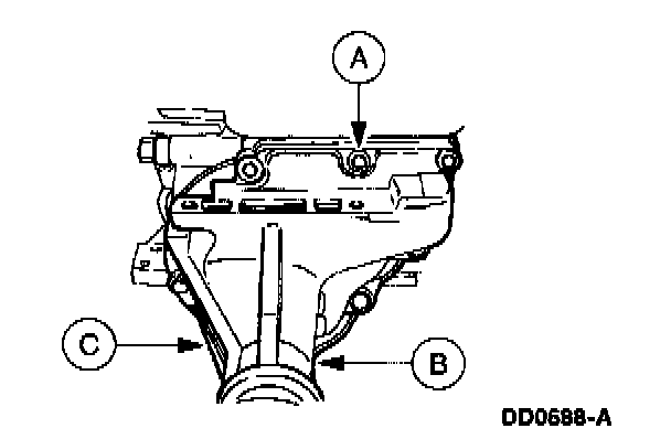 38. Remove the 8 (A) bolts, the (B) stud and the (C) extension housing.