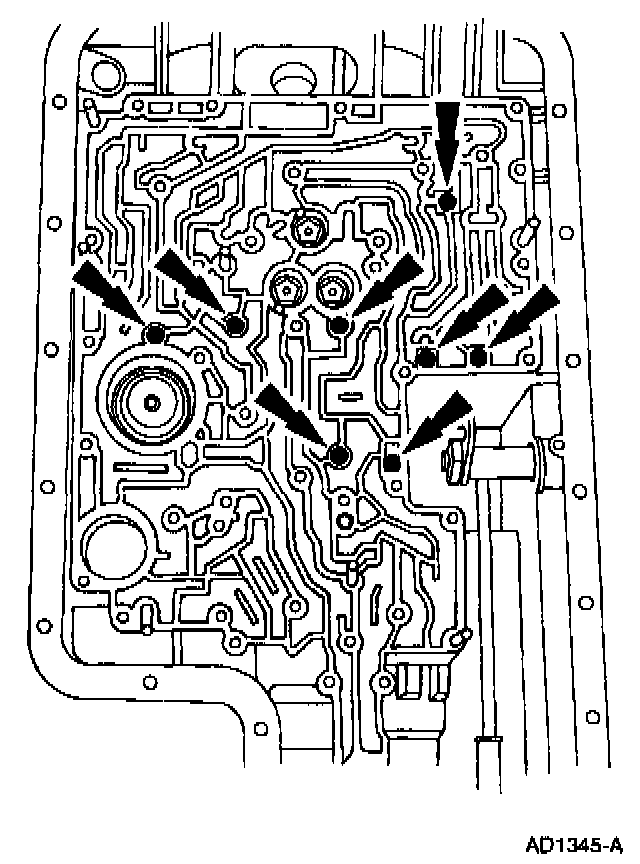 16. CAUTION: Use care not to damage the rubber check balls. Transmission shift problems may occur.