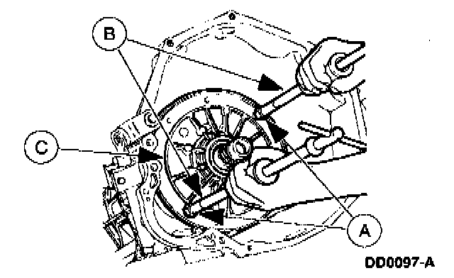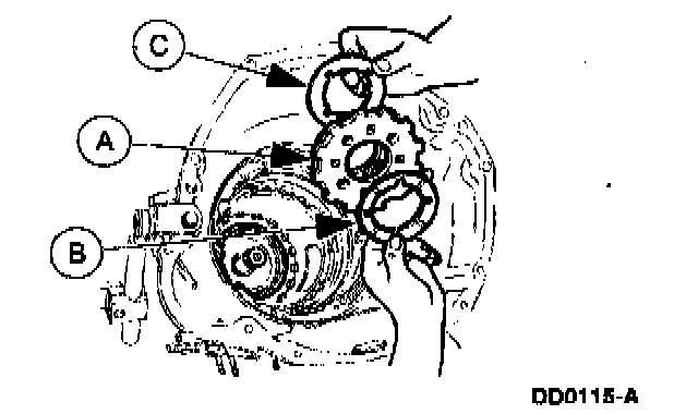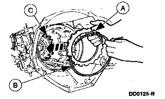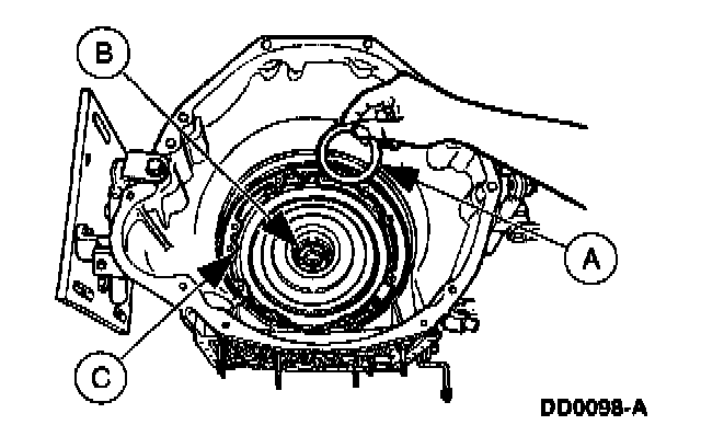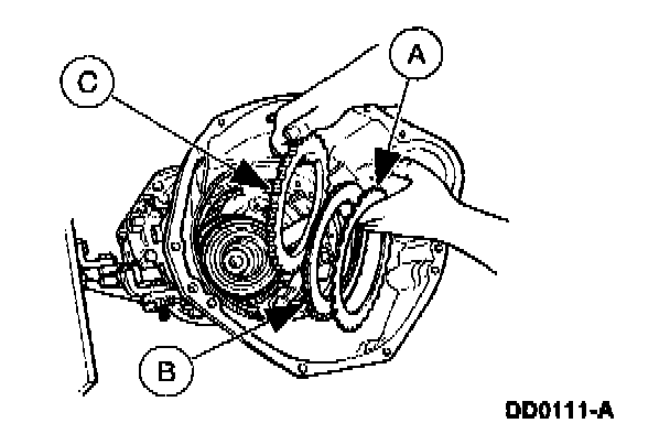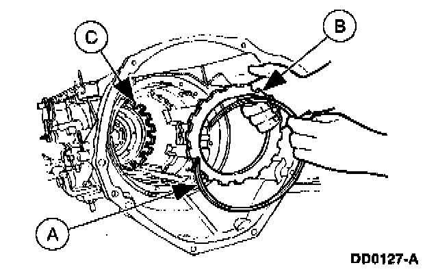 Remove the (A) intermediate clutch pressure apply plate, the (B) intermediate clutch pack and the (C) intermediate clutch rear pressure plate.