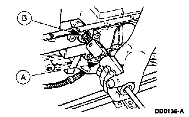 48. If required, remove the (A) bolts and the (B) parking rod guide plate.