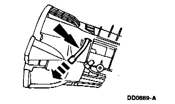 Remove the (A) nut, the (B) inner manual valve detent lever and the (C) parking pawl actuating rod.