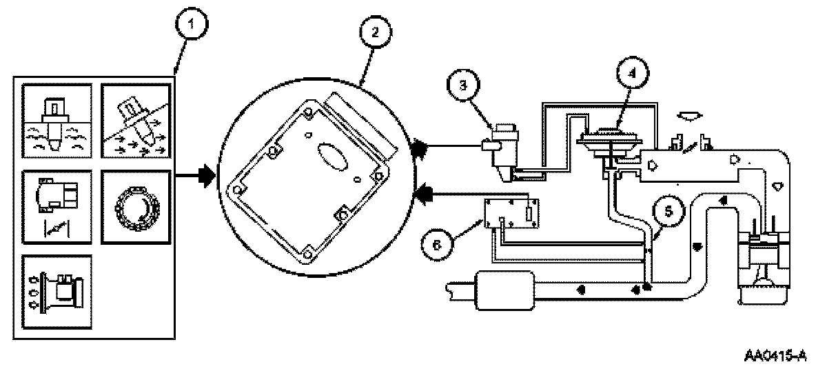 1. The Differential Pressure Feedback EGR system receives signals from the engine coolant temperature (ECT) sensor, intake air temperature (IAT) sensor, throttle position (TP) sensor, mass air flow (MAF) sensor and crankshaft position (CKP) sensor to provide information on engine operating conditions to the PCM. The engine must be warm, stable and running at a moderate load and rpm before the EGR system is activated. The PCM deactivates EGR during idle, extended wide open throttle or whenever a failure is detected in an EGR component or EGR required input.