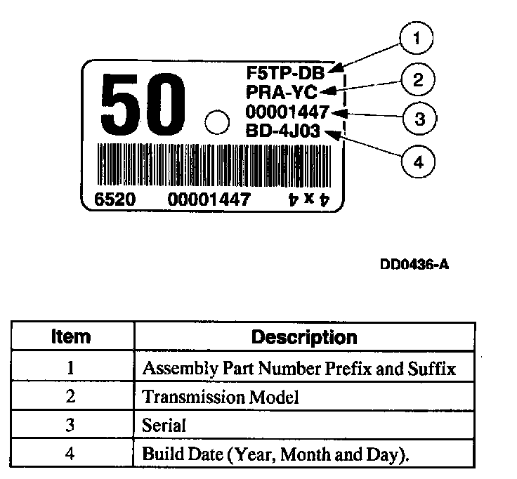 An identification tag is located on the left side of the transmission, rearward of the Transmission Range digital