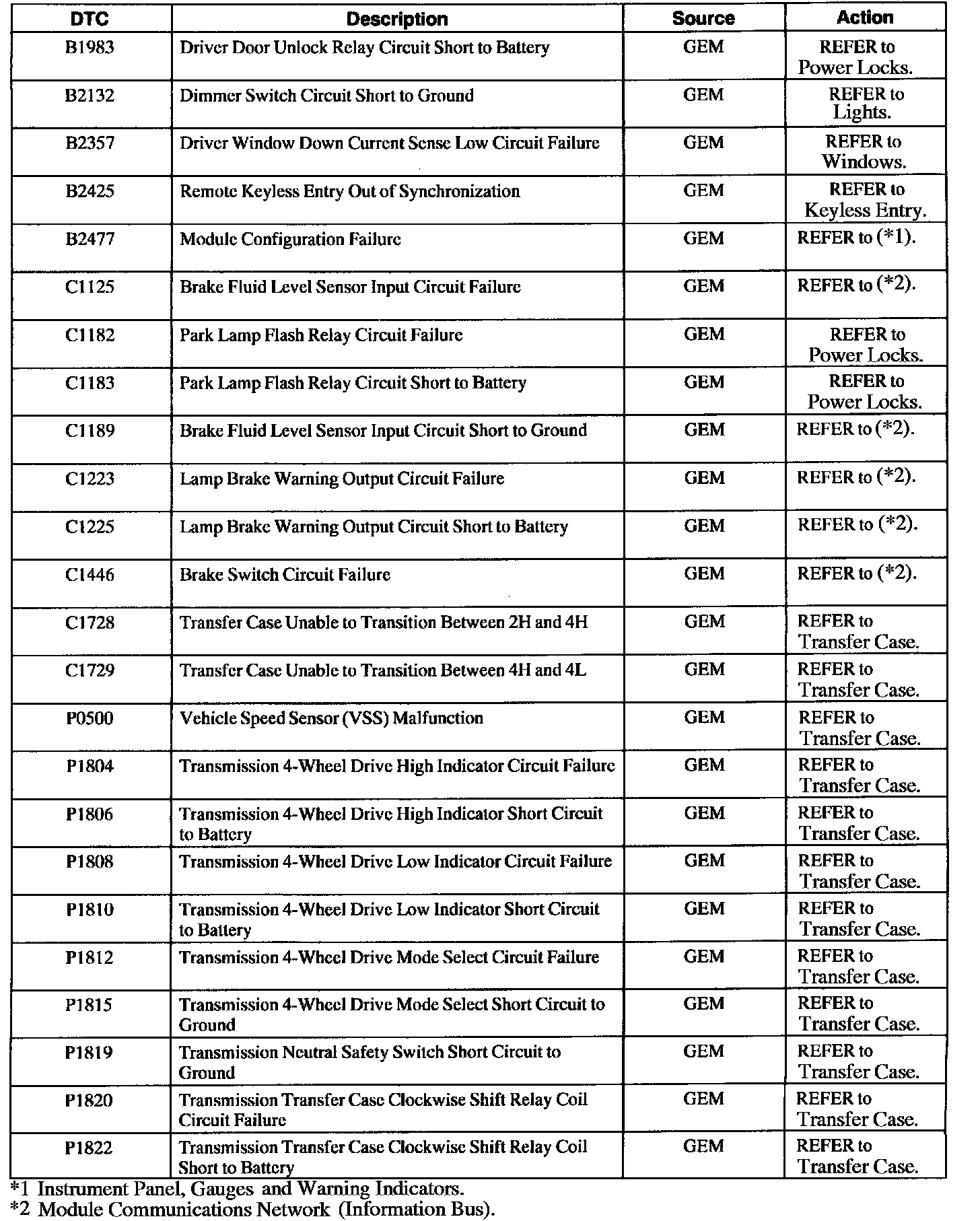 B1983 - B2477, C1125 - C1729, and P0500 - P1822: