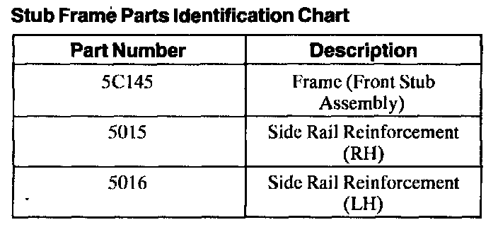 Stub Frame Parts Identification Chart: