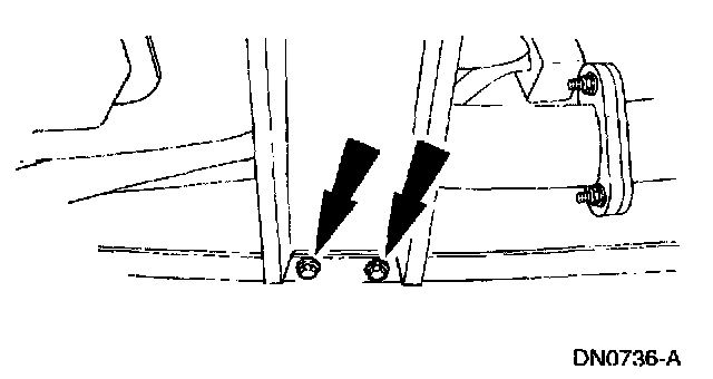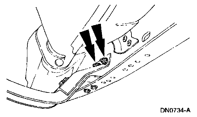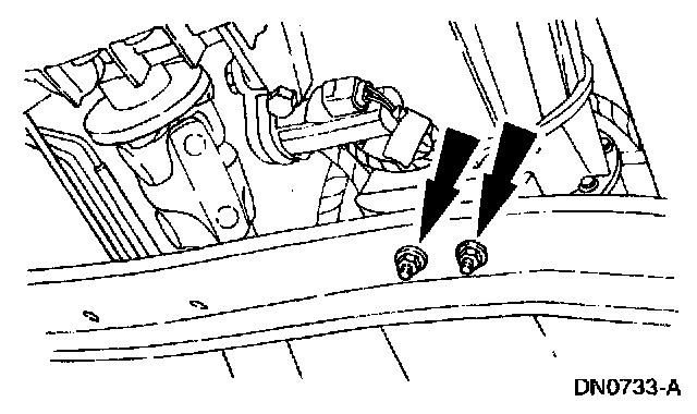 8. Remove the transmission support crossmember nuts and bolts (LH side).