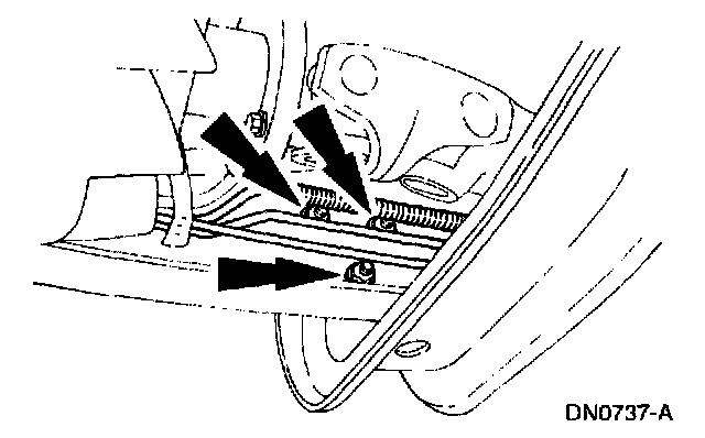 7. Remove the transmission support crossmember nuts and bolts (RH side).
