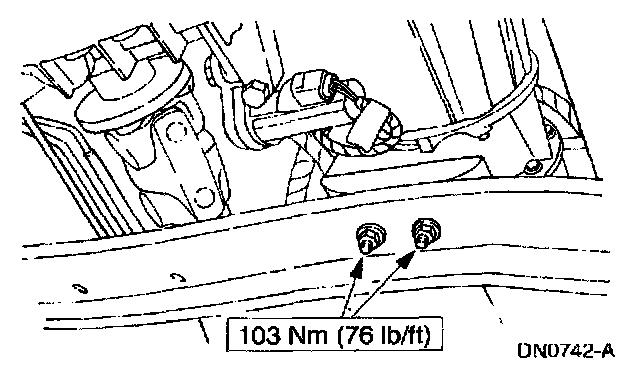 1. NOTE: Refer to Specifications for transmission support crossmember nut and bolt applications. Specifications
