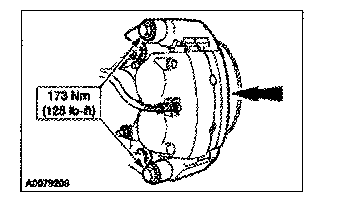 3. Remove and support the caliper and anchor plate assembly. Remove the anchor plate bolts.