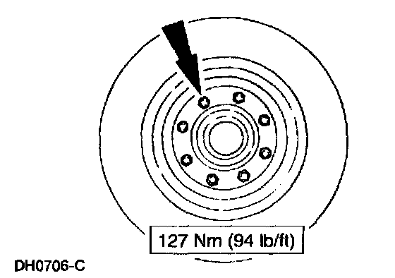 1. NOTE: The brake disc is part of the wheel hub on all axles except the Ford 10.50-inch axle for single rear wheel applications. Removal of the hub on a Dana or Ford axle refer to: "Steering and Suspension / Suspension, Wheel Hub" Wheel Hub