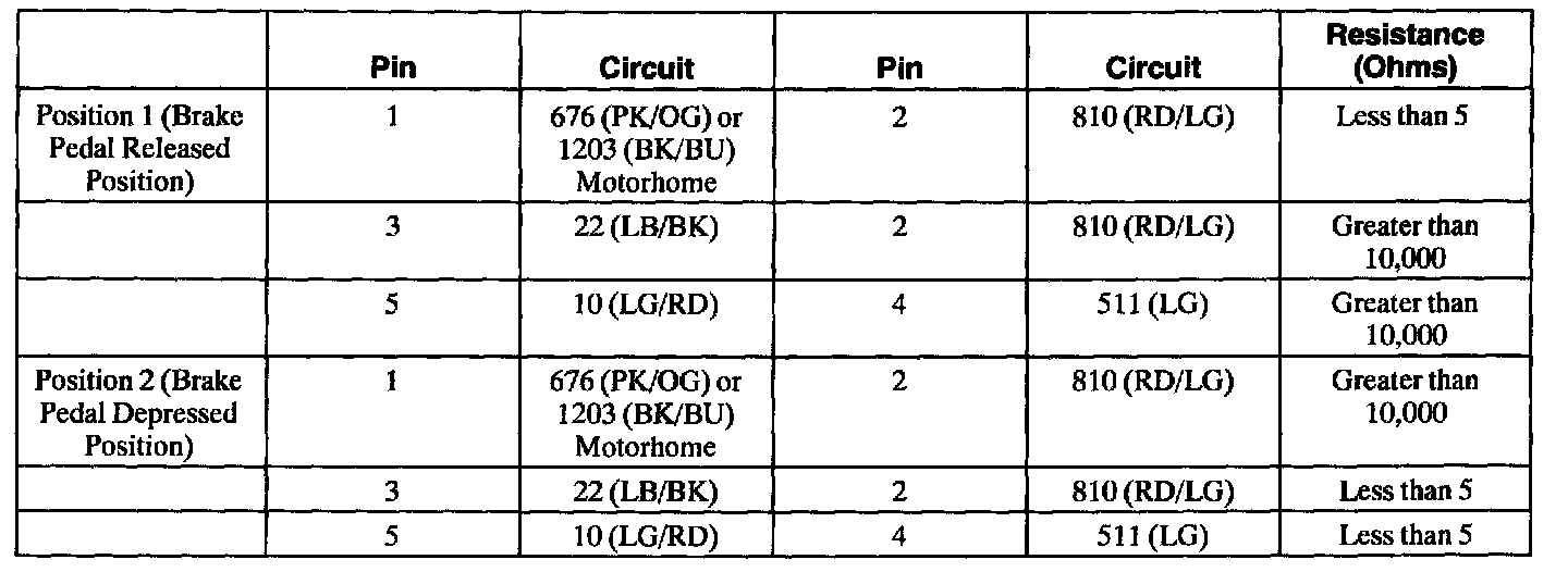 Use 73III Automotive Meter or equivalent to check the continuity between the given terminals of the BPP switch C279, component side, using the table.