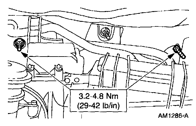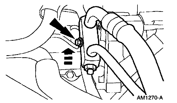 9. Loosen the A/C manifold tube retaining bolt and reposition the A/C manifold and tube assembly.