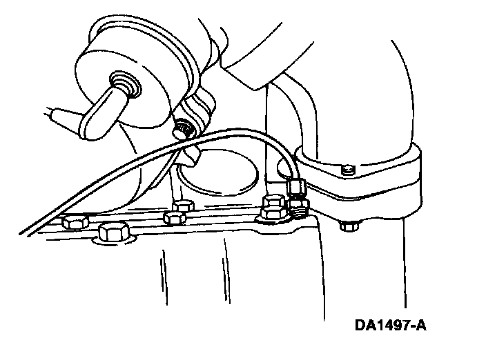 Remove the doghouse cover and remove the 1/8-inch pipe plug from the top rear of left head. Install Gauge (0-160 psi) Bar 014-00761 or equivalent. Run engine at idle and check for leaks from the line to the gauge. Measure pressure with a full load on the engine. If pressure is not within 207-552 kPa (30-80 psi), replace fuel filter. Retest and if still below specification, replace left head check valve, which is located on the front of the left head between the fuel inlet line and the head.
