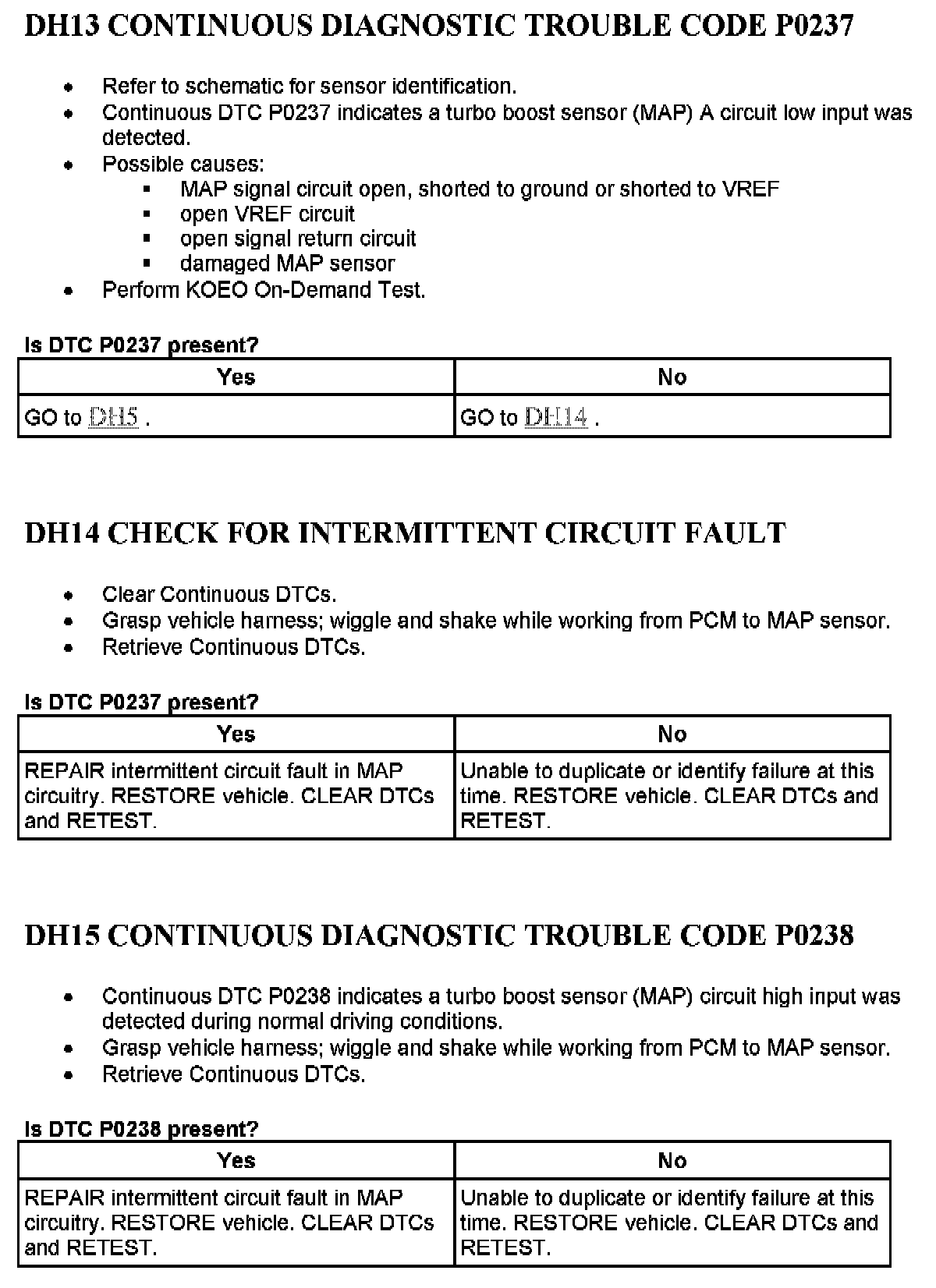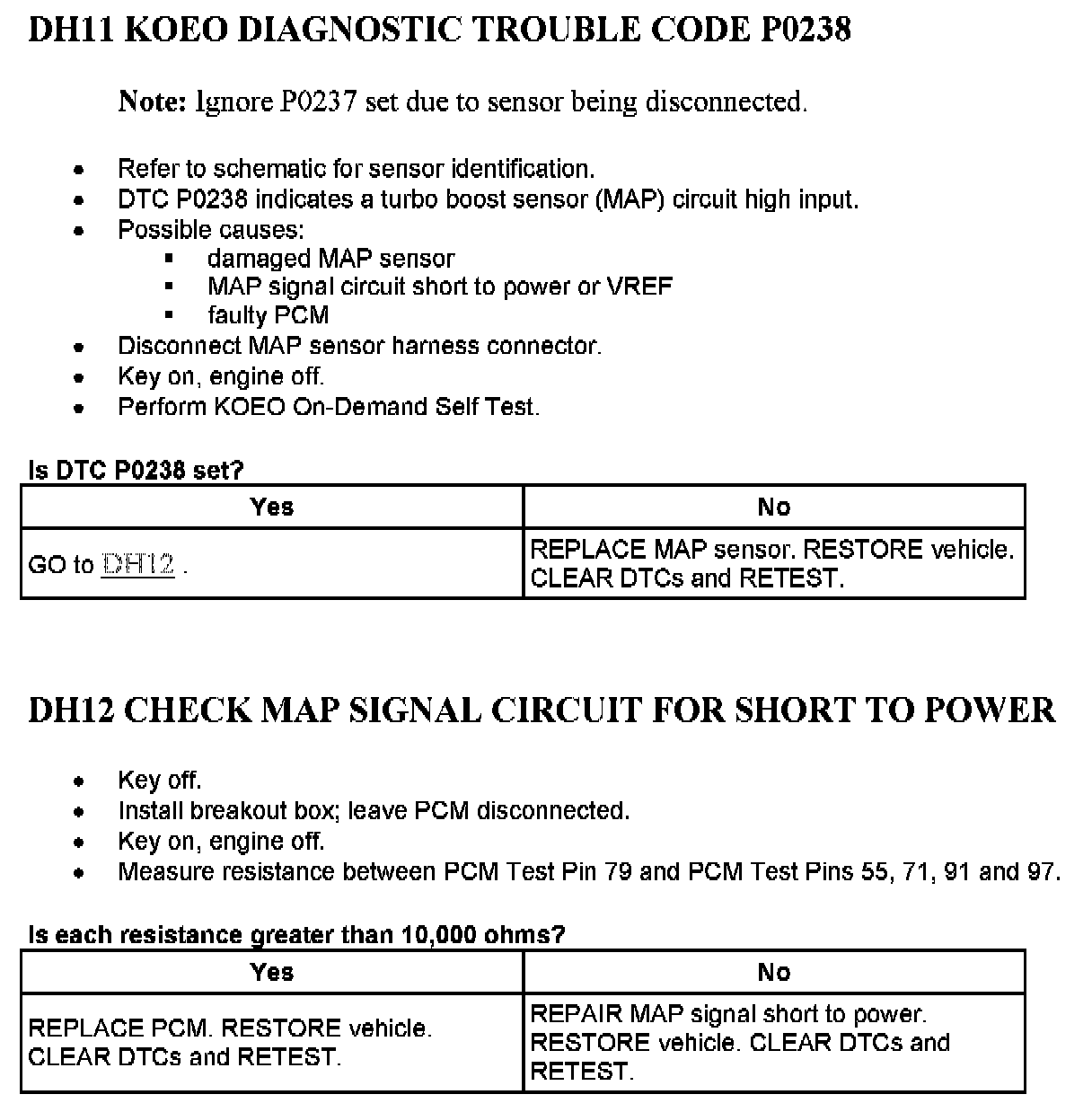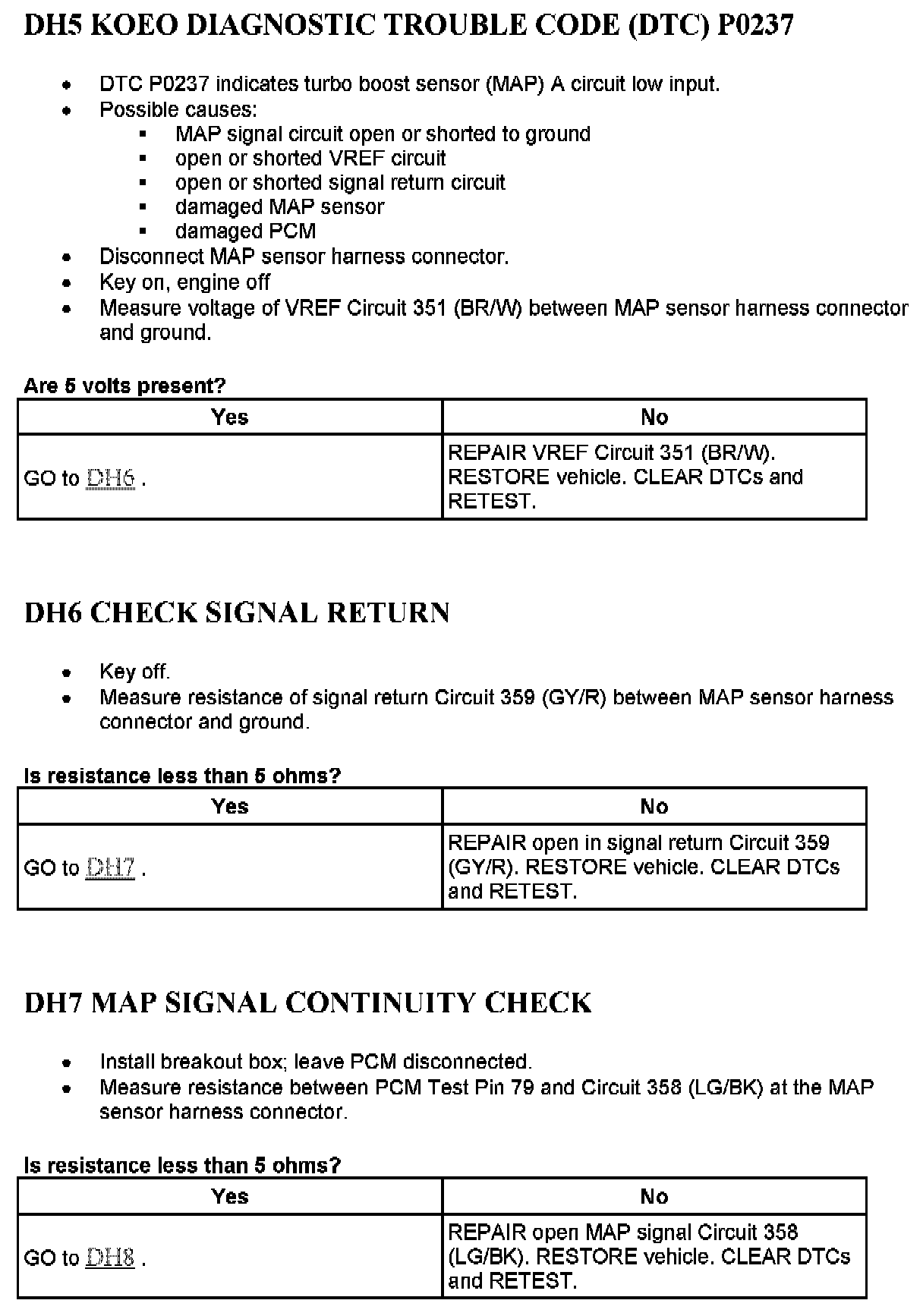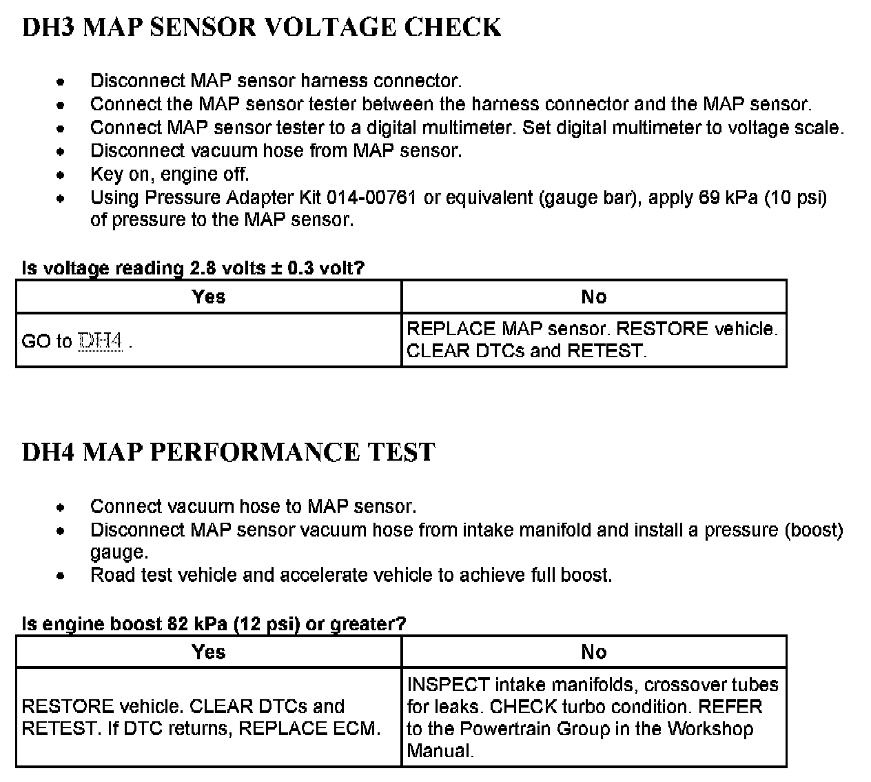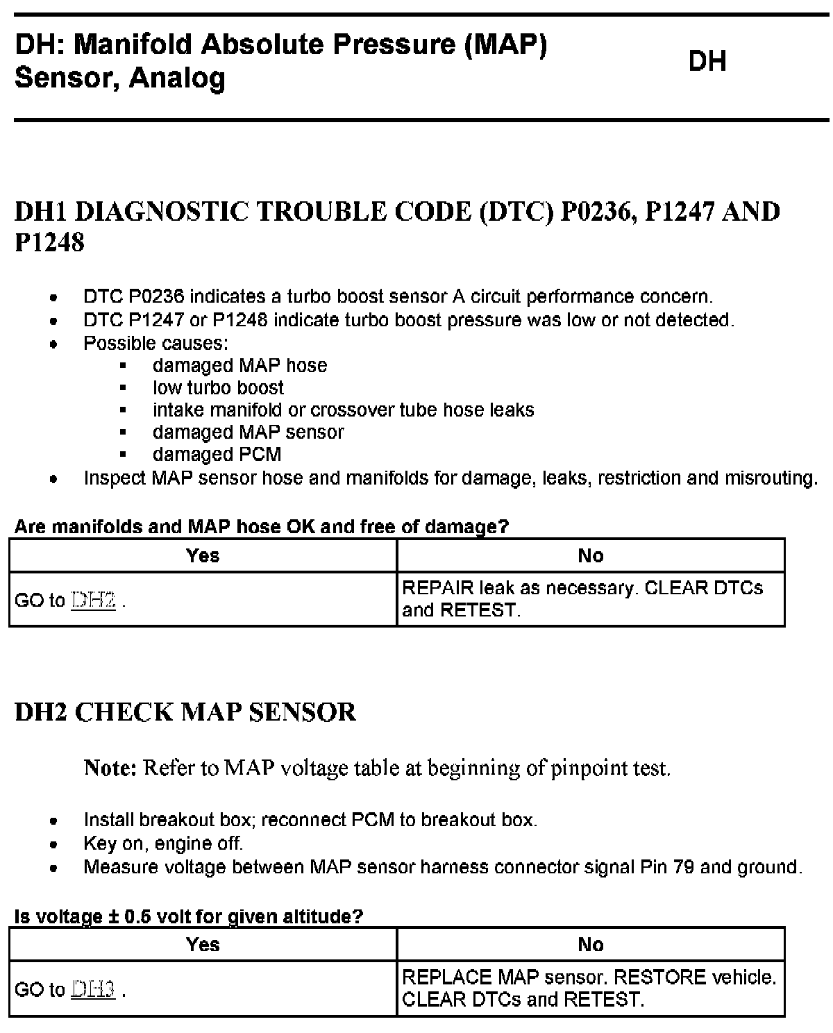 Tests DH: Manifold Absolute Pressure (MAP) Sensor, Analog