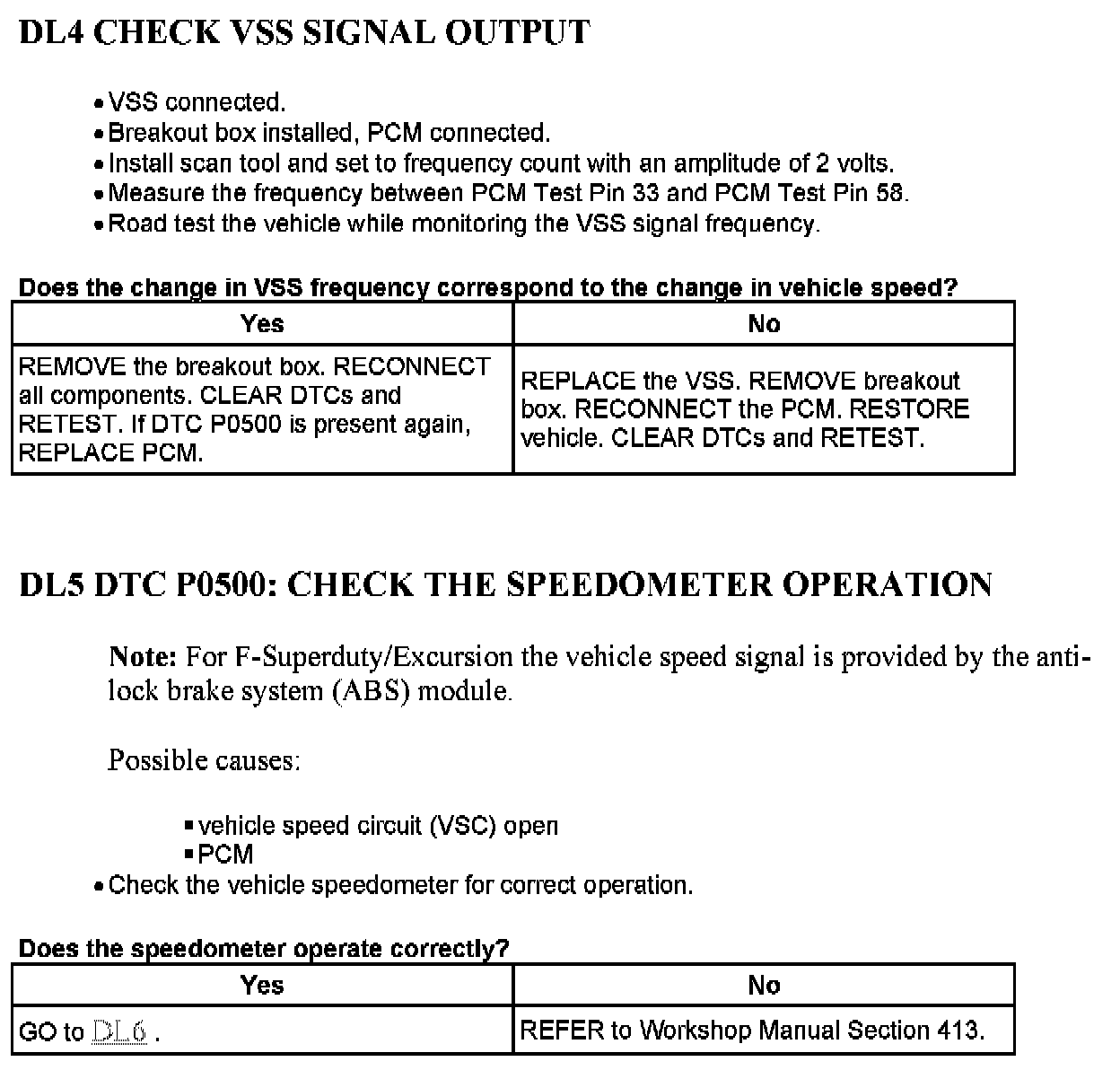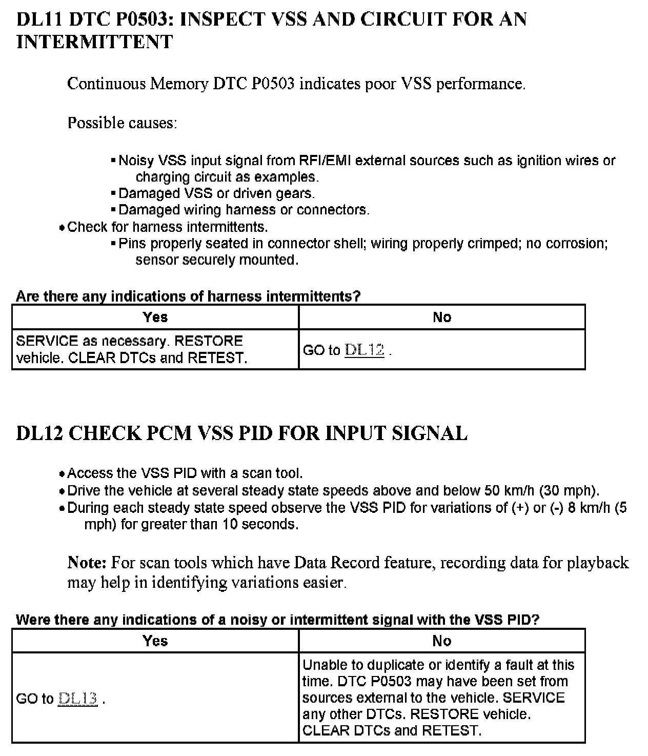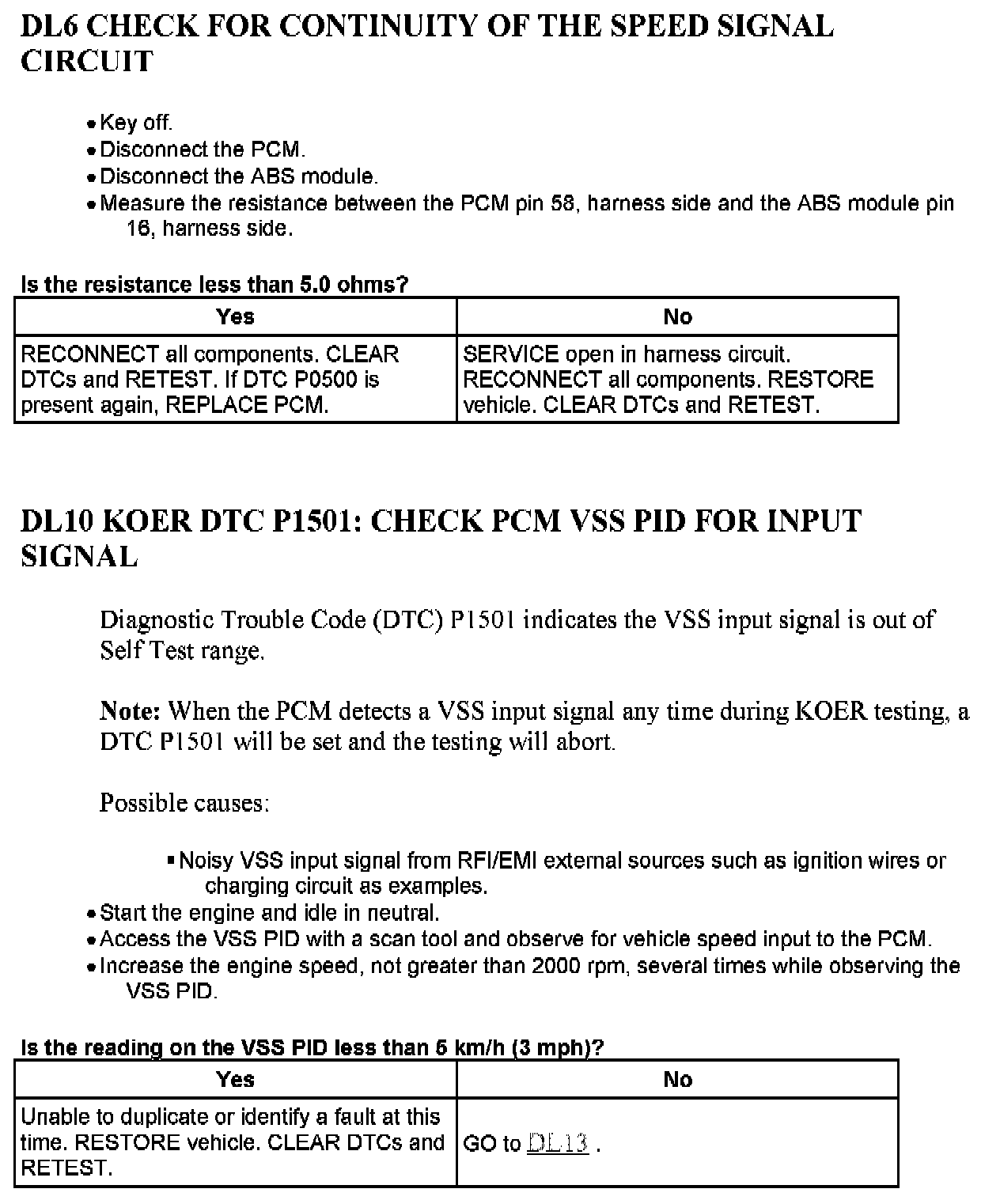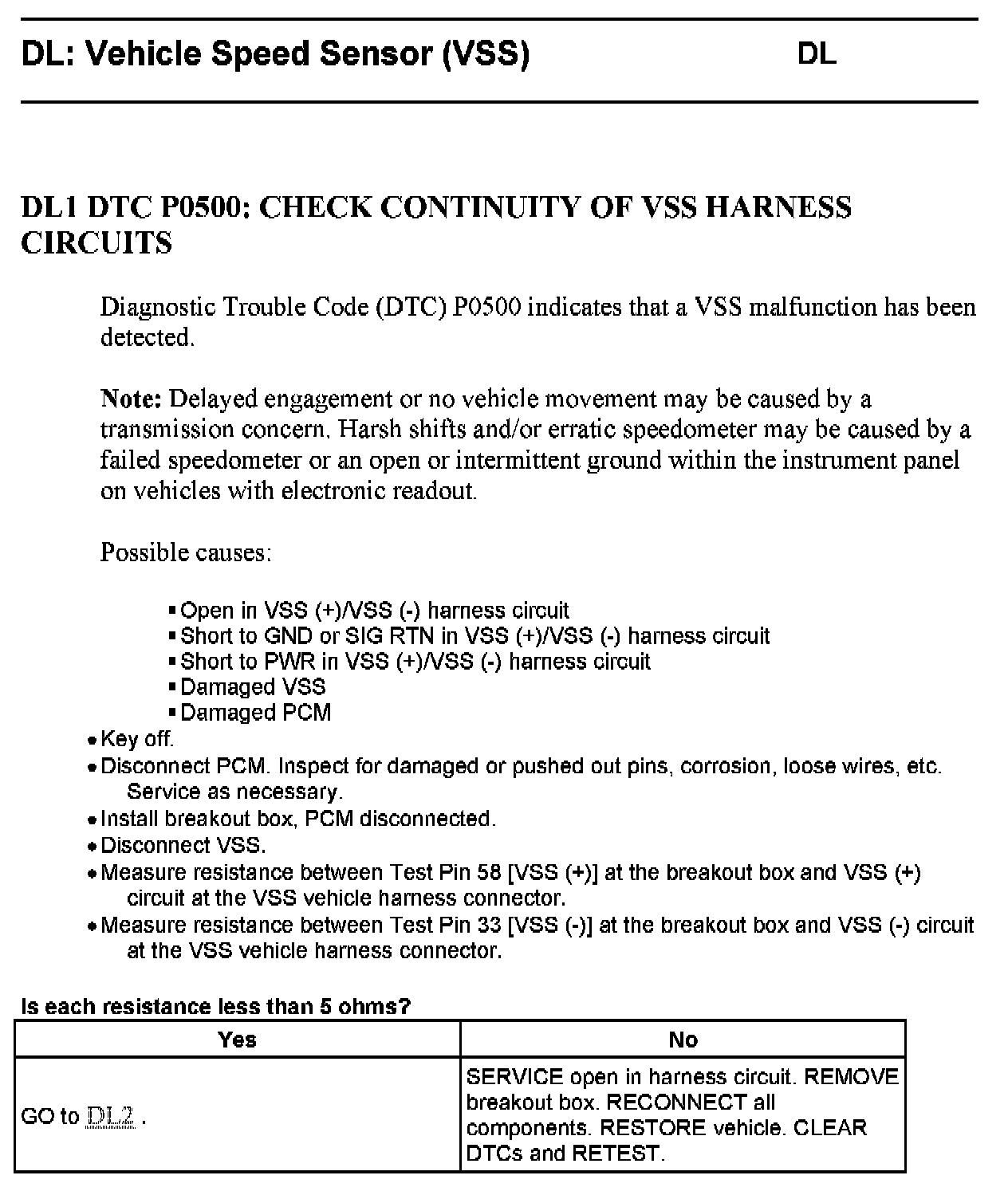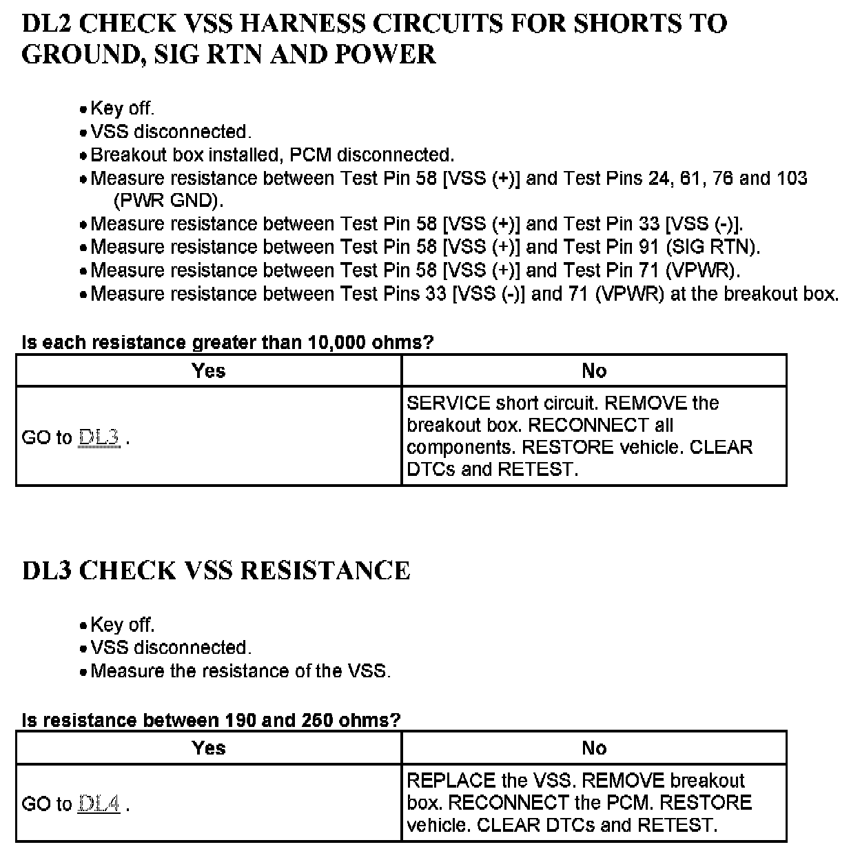 Tests DL: Vehicle Speed Sensor (VSS)