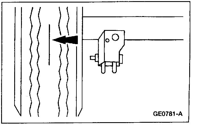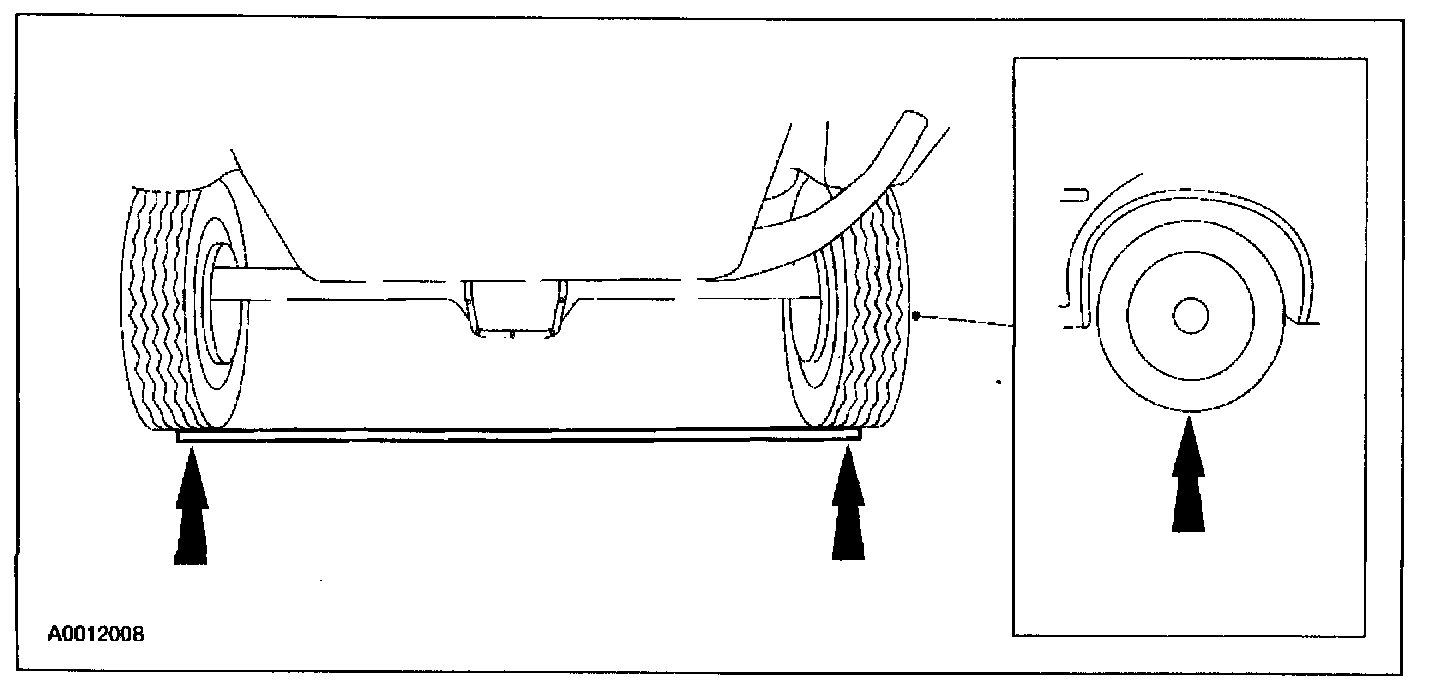 5. Rotate the free wheel slowly, by hand, until the feeling of driving the rear axle is encountered. Place a mark on the side of the tire, 305 mm (12 inches) from the center of the wheel, with a crayon or chalk.