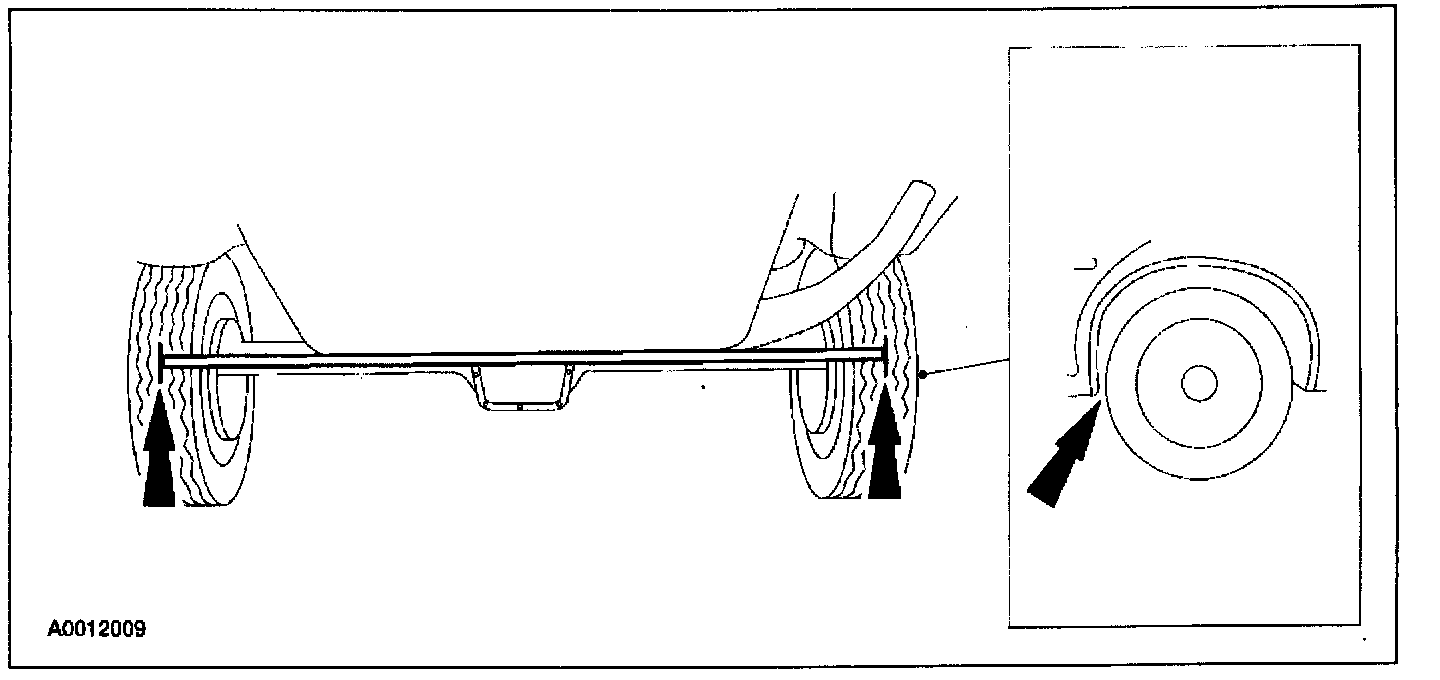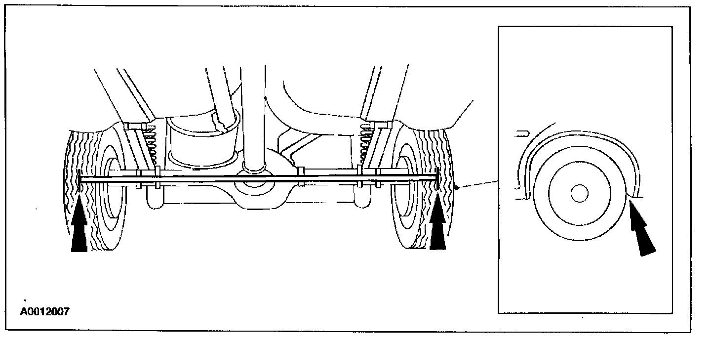 5. Rotate the rear wheels so the markings face the rear of the vehicle. Measure and record the distance between the marks (rear reading).