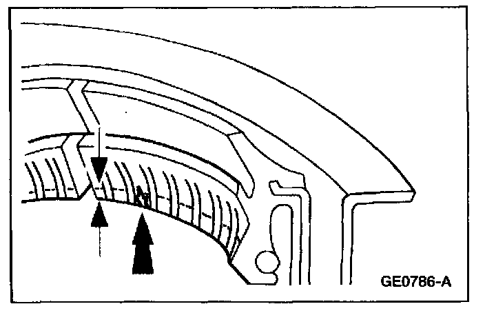 As noted, pinion bearings make a high-pitched, whistling noise, usually at all speeds. If however, there is only one pinion bearing that is worn/damaged, the noise may vary in different driving phases. Do not install new pinion bearings unless bearings are scored or damaged or there is a specific pinion bearing noise. A worn/damaged bearing will normally be obvious at disassembly. Examine the large end of the rollers for wear. If the pinion bearings original blend radius has worn to a sharp edge, install a new pinion bearing.