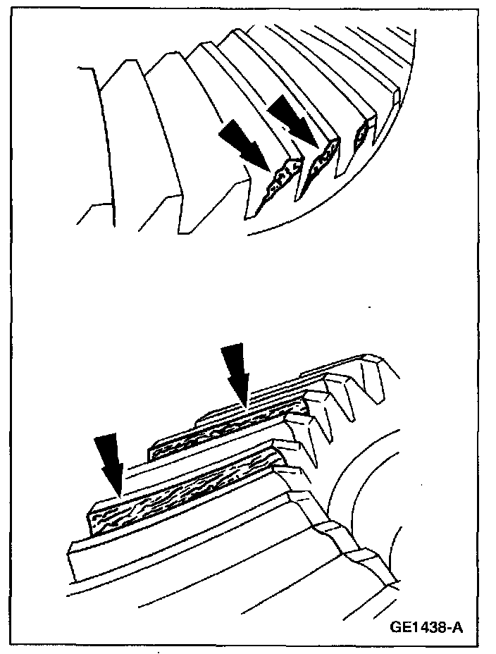 Clean the gear tooth nick or ridge with a small grinding wheel. If the damaged area is larger than 3.2 mm (1/8 inch), install a new gearset.