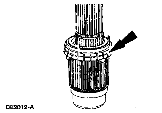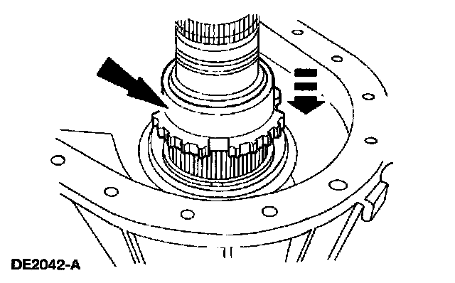 29. Position and rotate the synchronizer hub until it drops into the installed position. Install a new retaining ring.