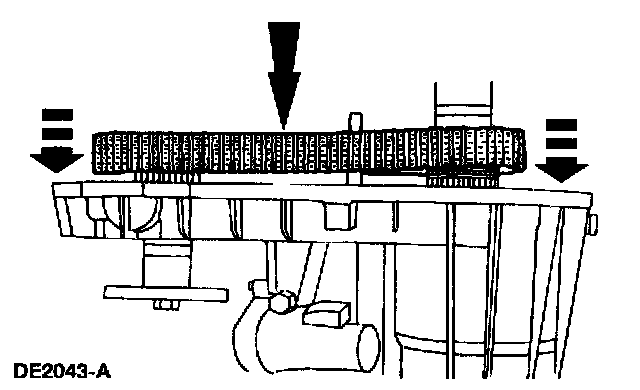 32. CAUTION: Install the mainshaft assembly so that the synchronizer strut bears against one of the synchronizer sleeve teeth.