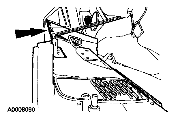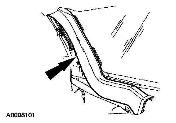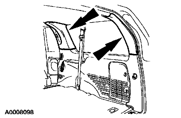 CAUTION: Use care not to damage the headliner when accessing the upper fasteners.