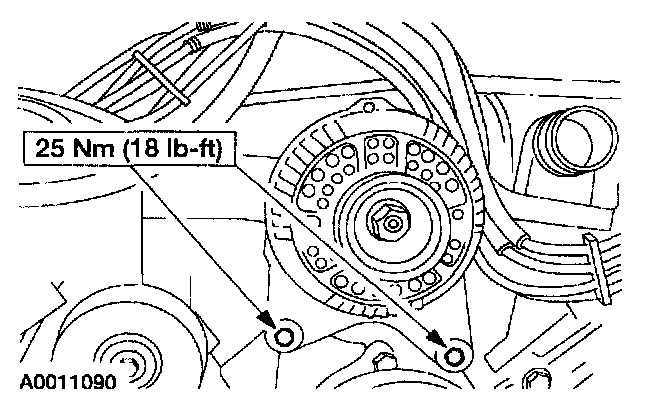 2. Remove the drive belt. For additional information, refer to Drive Belts, Mounts, Brackets and Accessories.