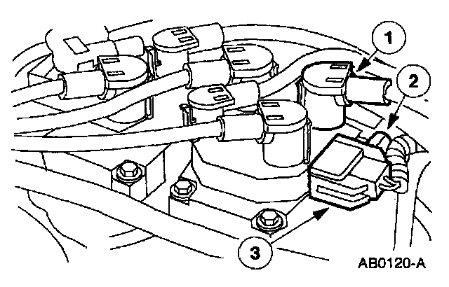 NOTE: Apply Silicone Brake Caliper Grease and Dielectric Compound D7AZ-19A331-A or equivalent meeting Ford specification ESE-M1C171-A to the inside of the spark plug wire ignition coil boots.