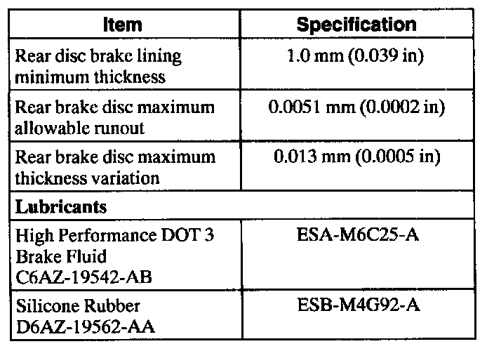 Rear Brakes - Service Specifications: