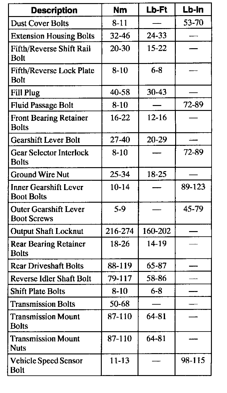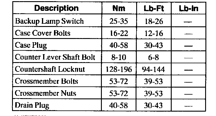 Torque Specifications