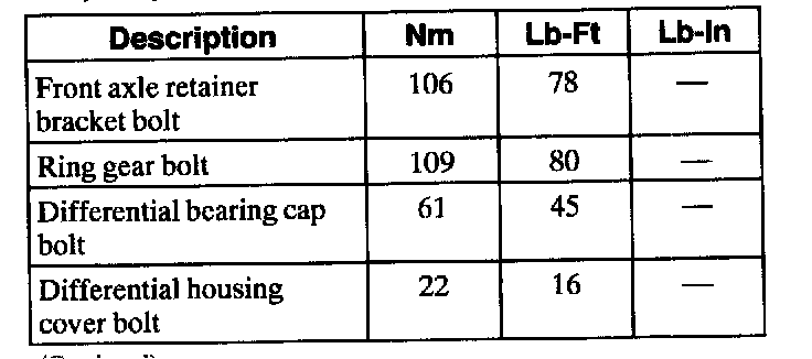 Torque Specifications