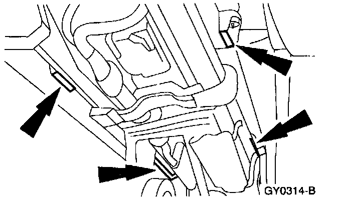 ^ MAKE SURE THE JACK AND JACK STANDS ARE PROPERLY LOCATED TO PREVENT THE VEHICLE FROM FALLING.